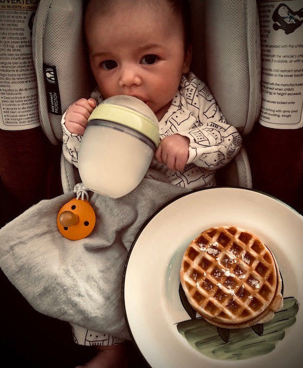 I cleaned the apartment and dishes, then made waffles for breakfast this morning with my seven-week-old.